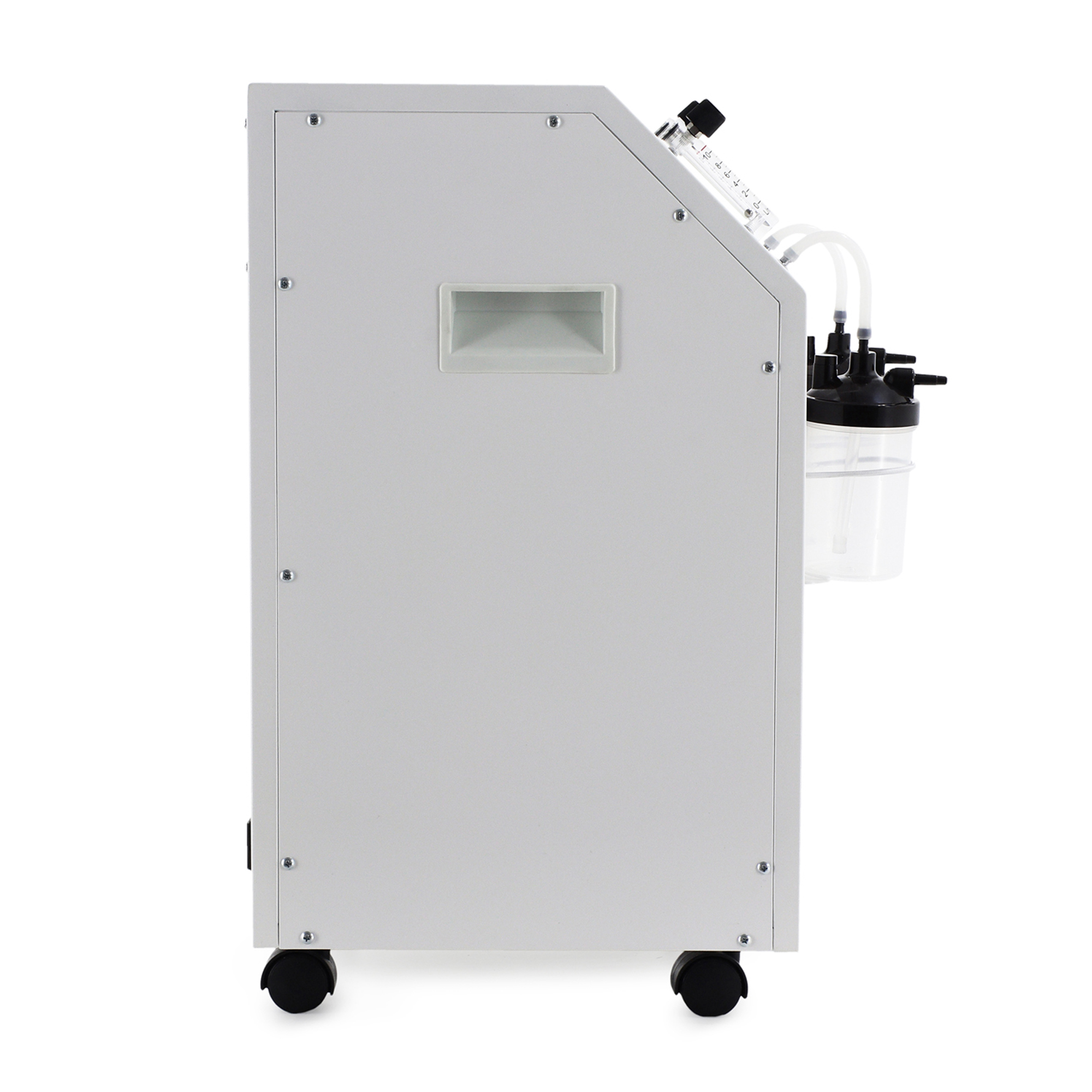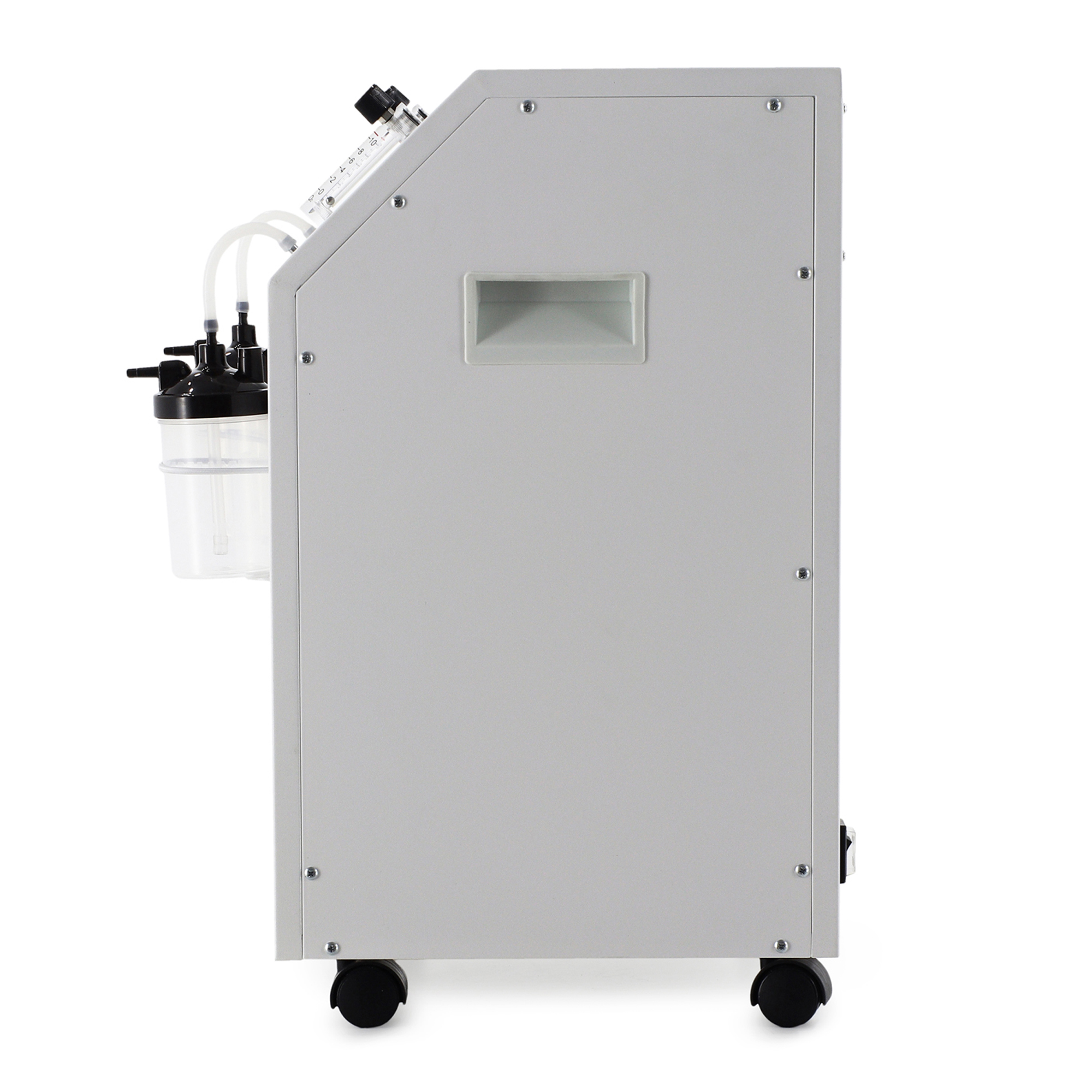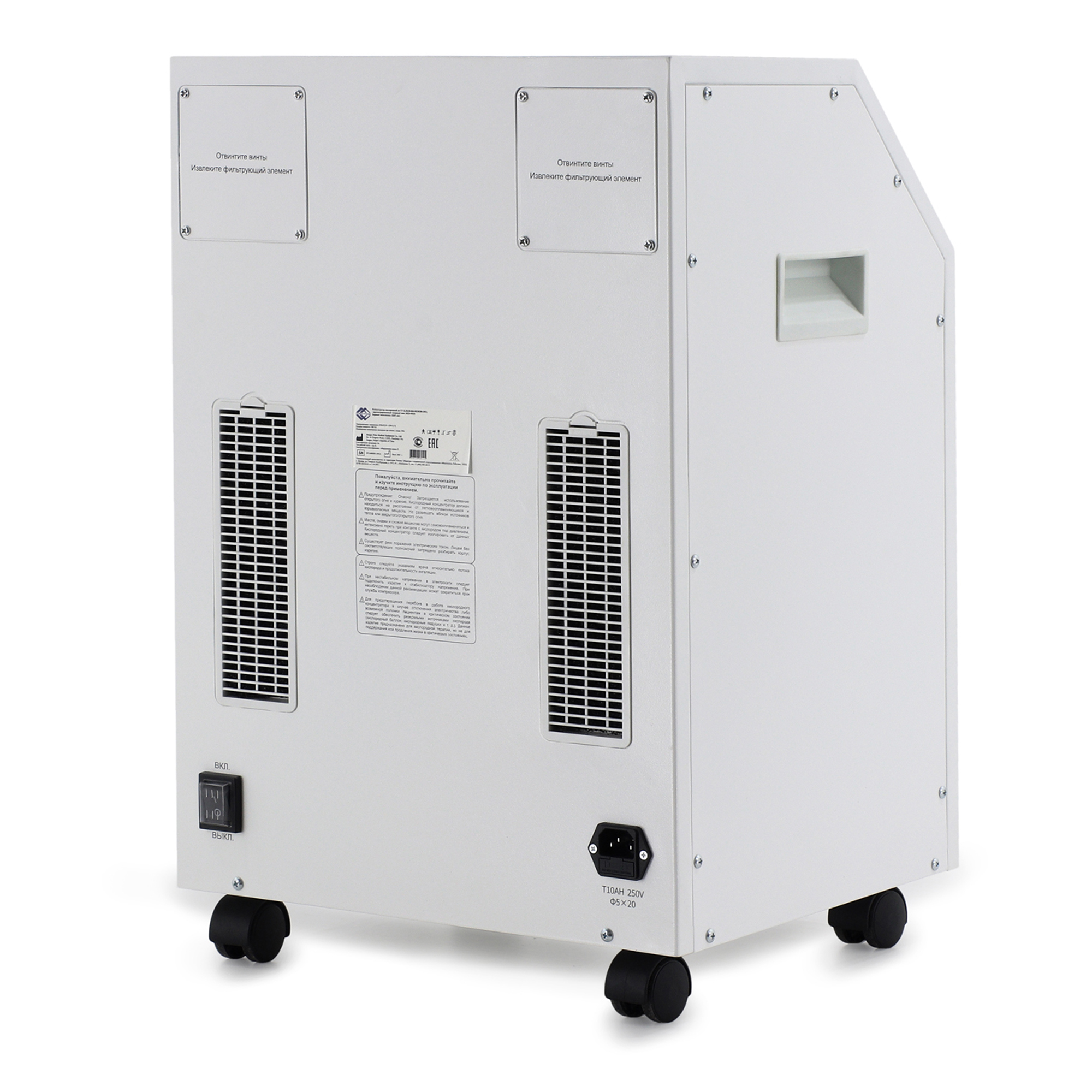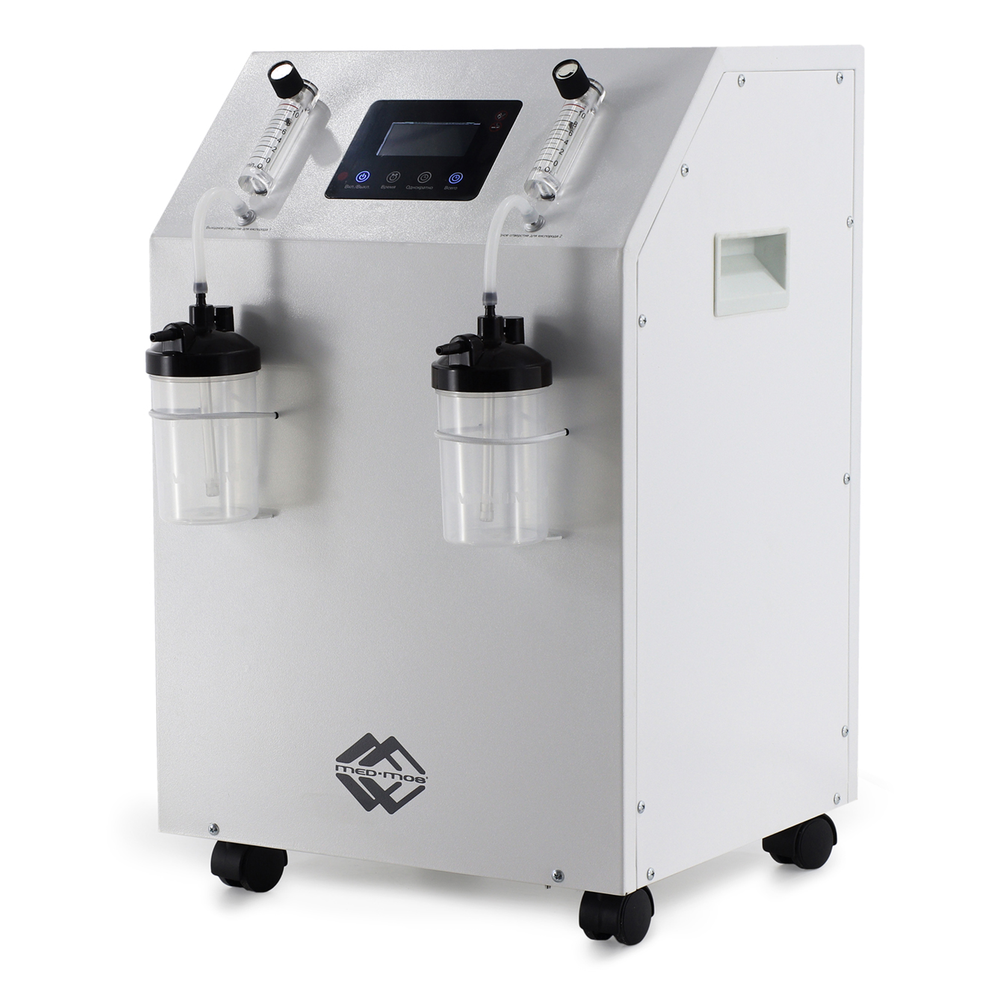 Концентратор оснащен встроенной функцией мелкодисперсного распыления лекарственных средств (небулайзер), позволяющей проводить эффективные ингаляционные процедуры для лечения заболеваний дыхательных путей. Устройство обеспечивает широкий диапазон регулировки скорости потока кислородно-воздушной смеси от 1,0 до 10,0 л/мин с точным шагом 0,1 л/мин, что позволяет индивидуально подбирать параметры терапии для каждого пациента. Корпус аппарата изготовлен из ударопрочного ABS-пластика и установлен на четырех опорных колесах диаметром 4 см, обеспечивающих легкое и бесшумное перемещение по помещениям медицинского учреждения.