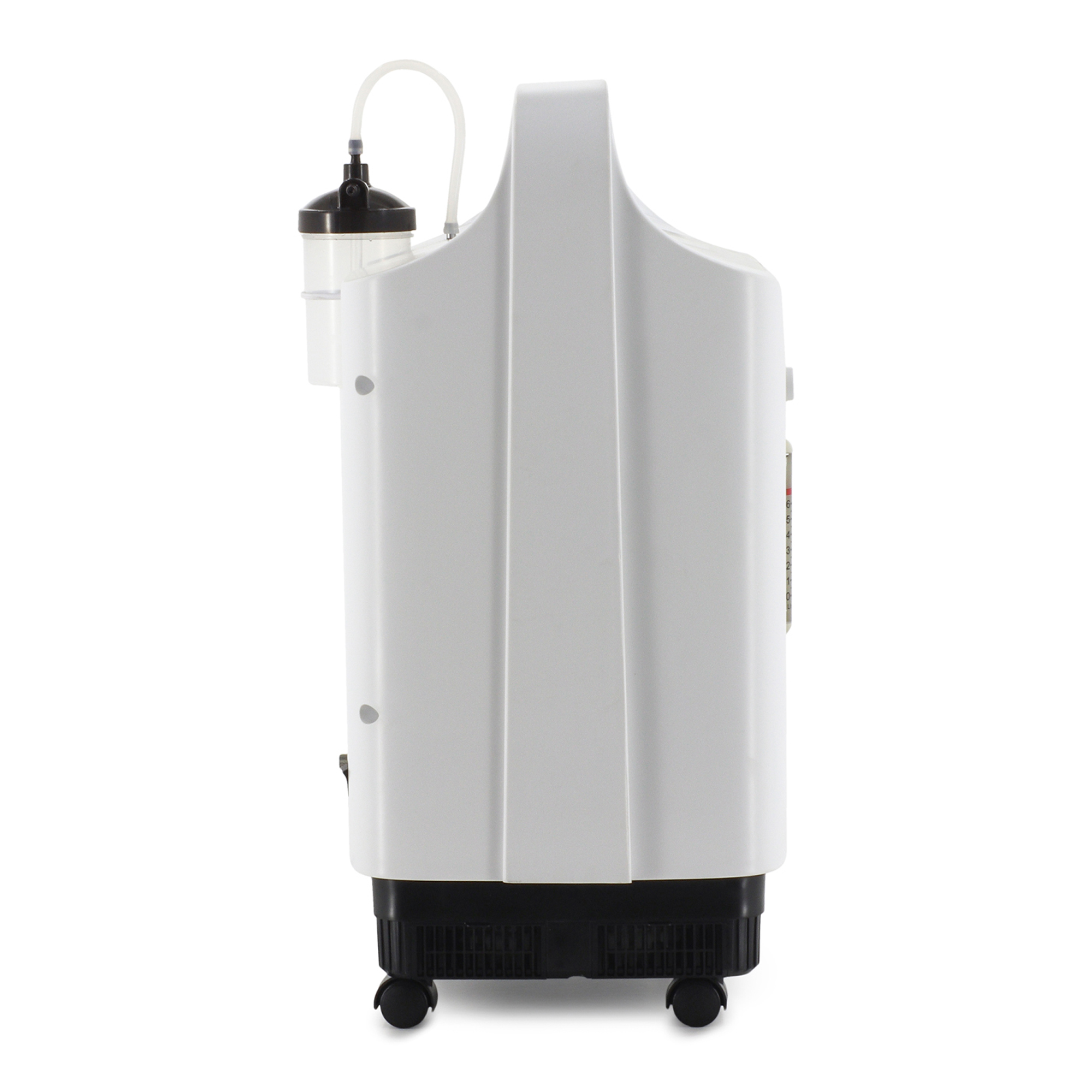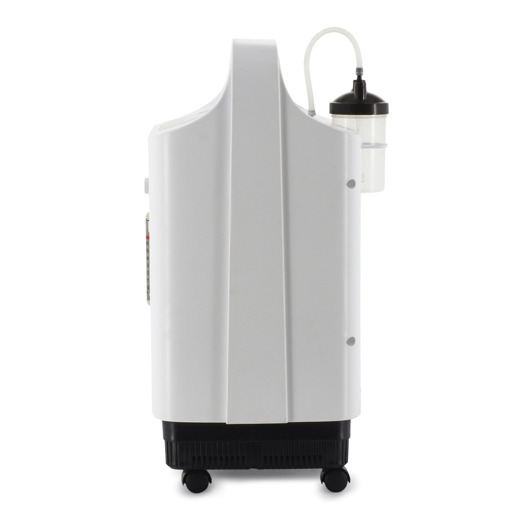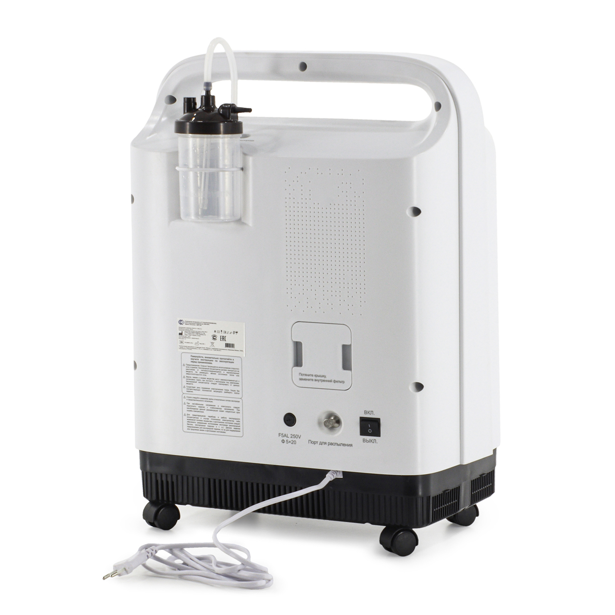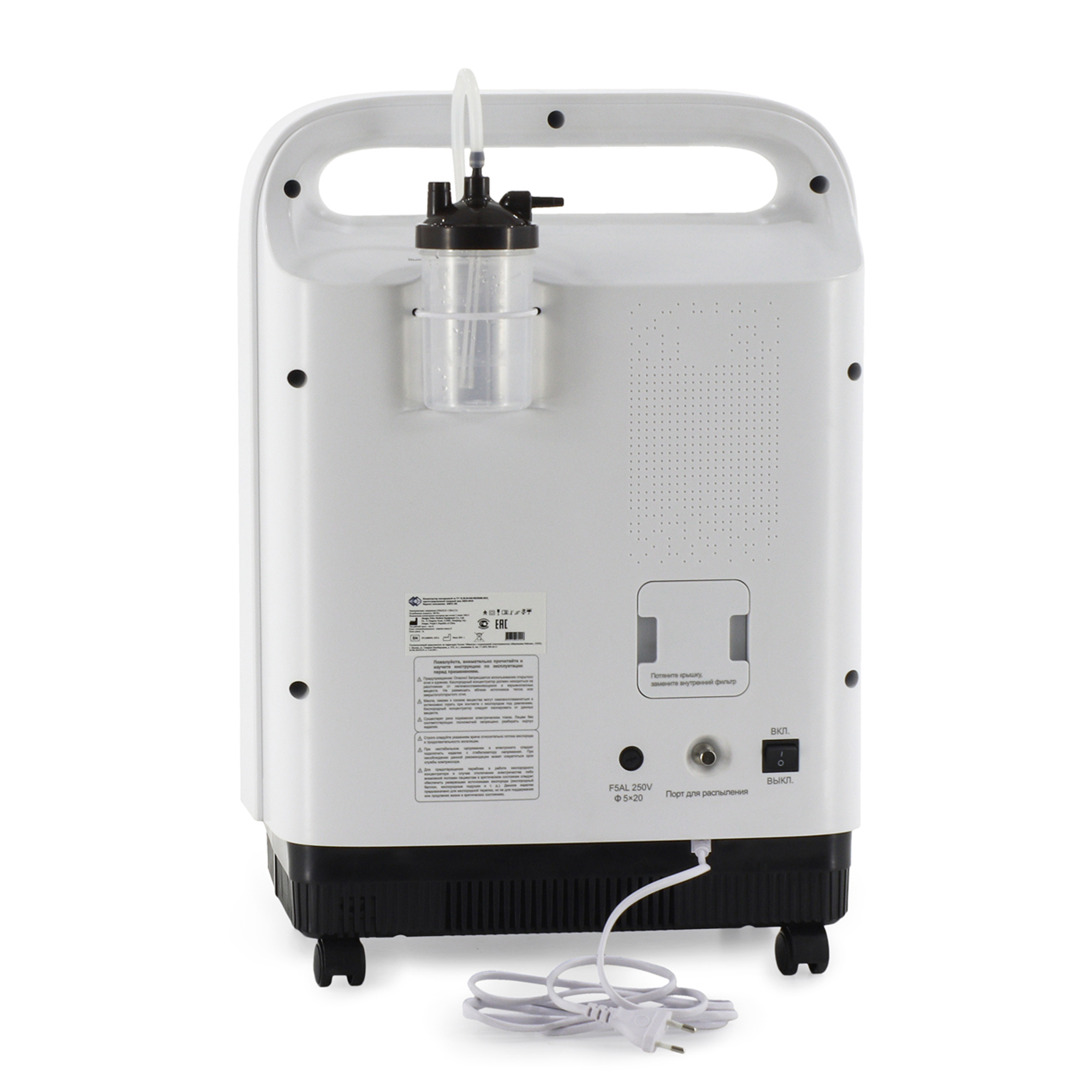 Корпус концентратора изготовлен из высокопрочного ABS-пластика, обеспечивающего долговечность и устойчивость к механическим воздействиям. Для удобства перемещения устройство установлено на четырех опорных колесах диаметром 3 см. Управление аппаратом осуществляется через интуитивно понятную панель с большим ЖК-дисплеем размером 12,5 x 7,7 см, который отображает все ключевые параметры работы. Концентратор обладает расширенным набором функций, включая встроенный съемный увлажнитель кислородно-воздушной смеси, систему голосового и светового оповещения, таймер работы, дистанционное управление и фоновую подсветку. Особого внимания заслуживает система безопасности: аппарат оснащен звуковой индикацией, аварийным оповещением при отключении питания и сменным воздушным фильтром для очистки поступающего воздуха от микрочастиц пыли.
