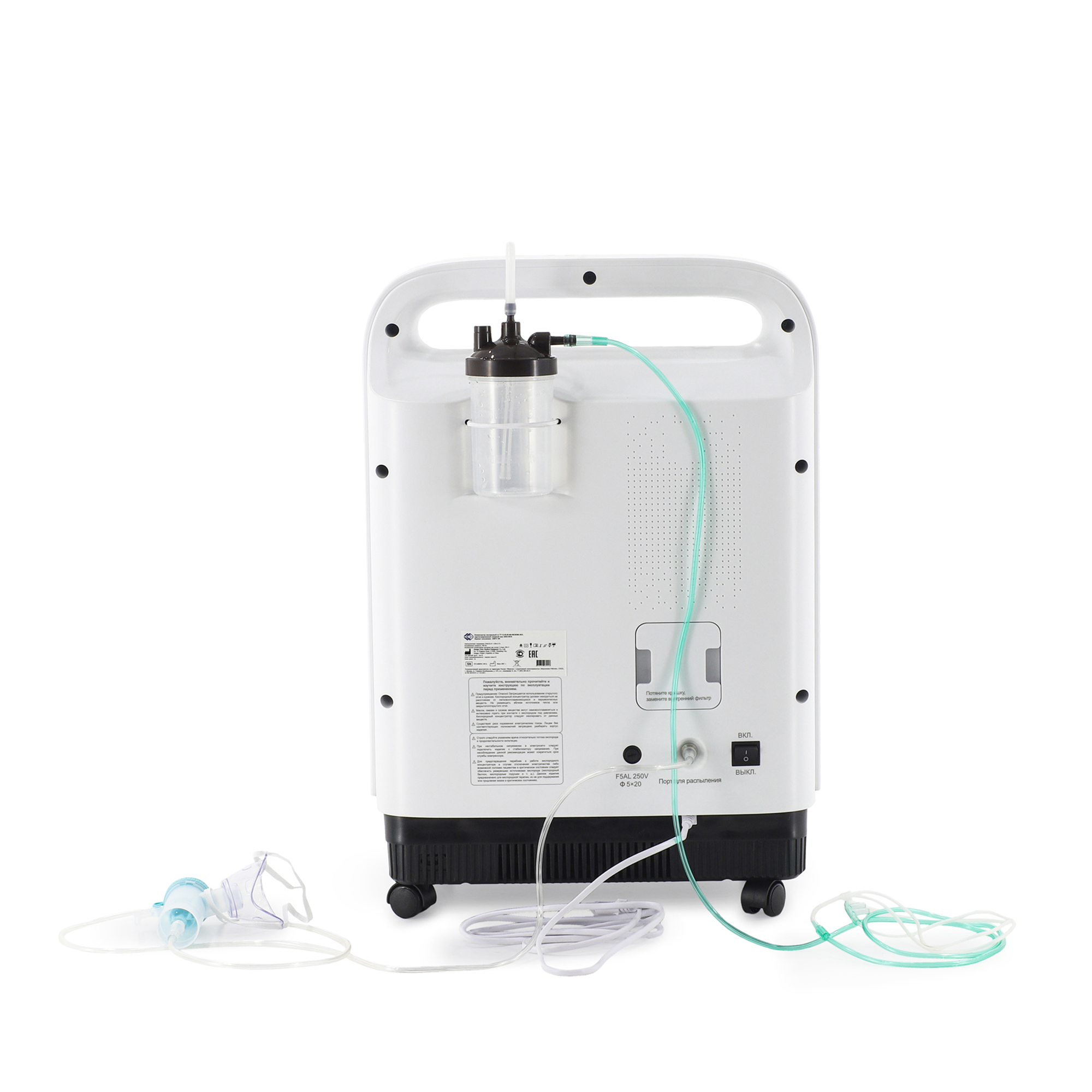 - Концентрация кислорода на выходе: ≥94% при потоке 2 л/мин и при максимальном потоке